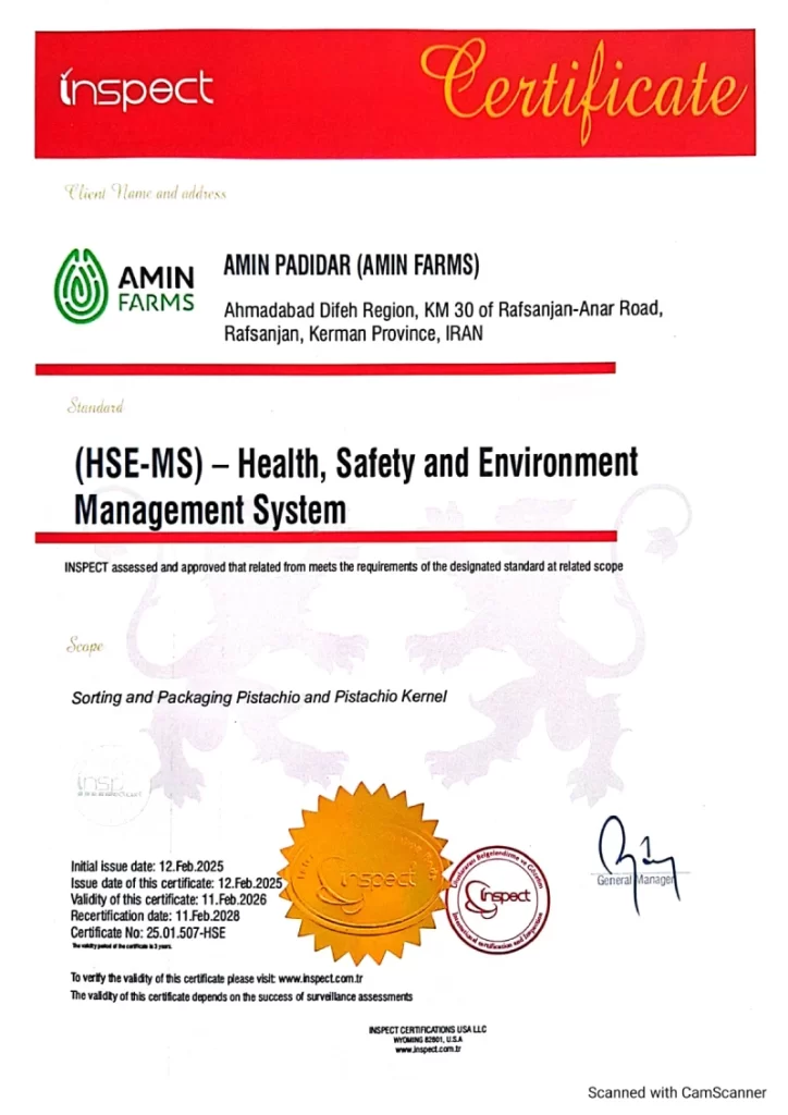 Located 30 kilometers from Rafsanjan—the heart of Iran’s pistachio region—Amin Farms’ processing complex is among the country’s most advanced facilities. Covering 40,000 square meters and supported by over 400 skilled professionals, Amin Farms has the most modern pistachio lines, equipment, and laboratories in Iran and is the first pistachio processing plant that uses silos to store pistachios.