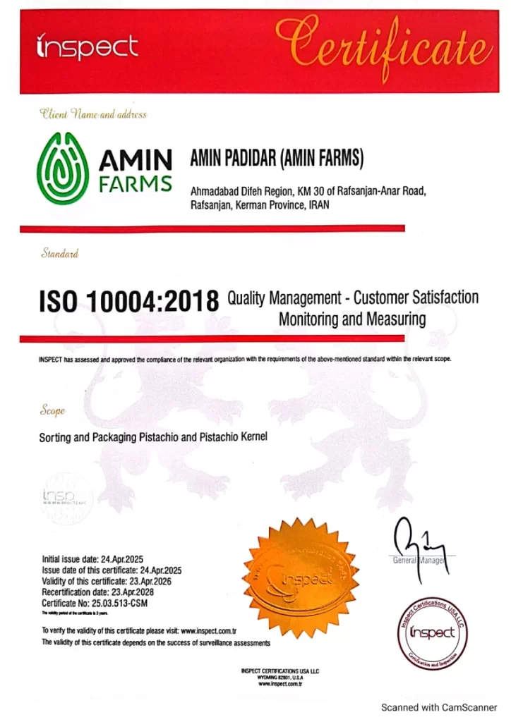 Amin Farms is a fourth-generation agricultural enterprise that pioneered in the growing, processing, and marketing of Iranian Pistachios in the early 1900s. Today, building on this prestigious history, we are moving towards reliability, innovation, quality, and ethical commitment.